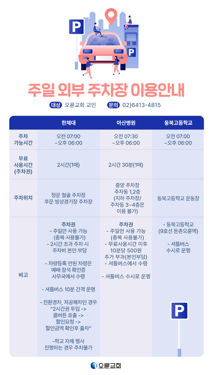 주일 외부 주차장 이용안내
