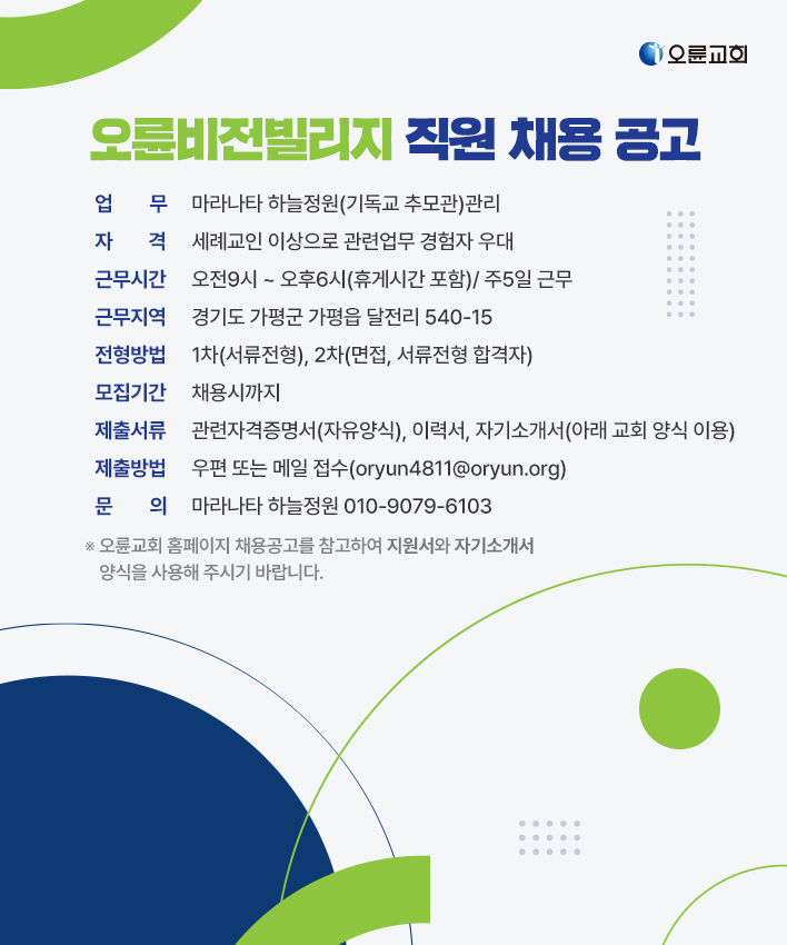 오륜비전빌리지 직원 채용 공고