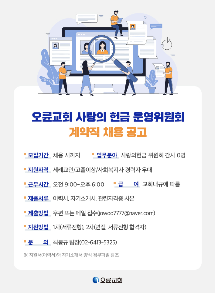 오륜교회 사랑의 헌금 운영위원회 계약직 채용 공고