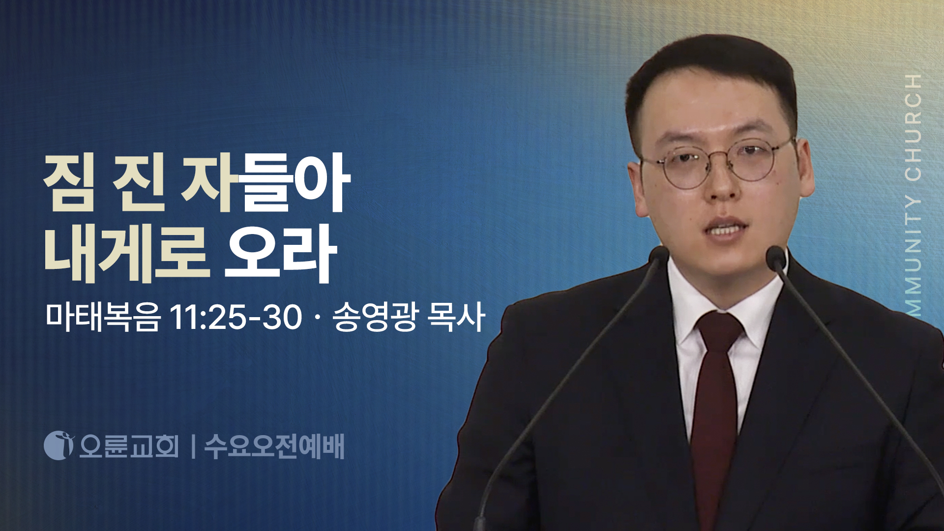 * 오륜교회 유튜브 공식채널 및 홈페이지에 게재되는 모든 동영상의 불법 다운로드, 무단 재배포(재업로드)를 금합니다. (유료폰트,컨텐츠 및 저작권있는 찬양을 사용하므로 타채널이나 홈페이지등에 사용할 시 저작권법에 위반되어 법적 문제가 생길 수 있기에 이를 방지하고자 함입니다)